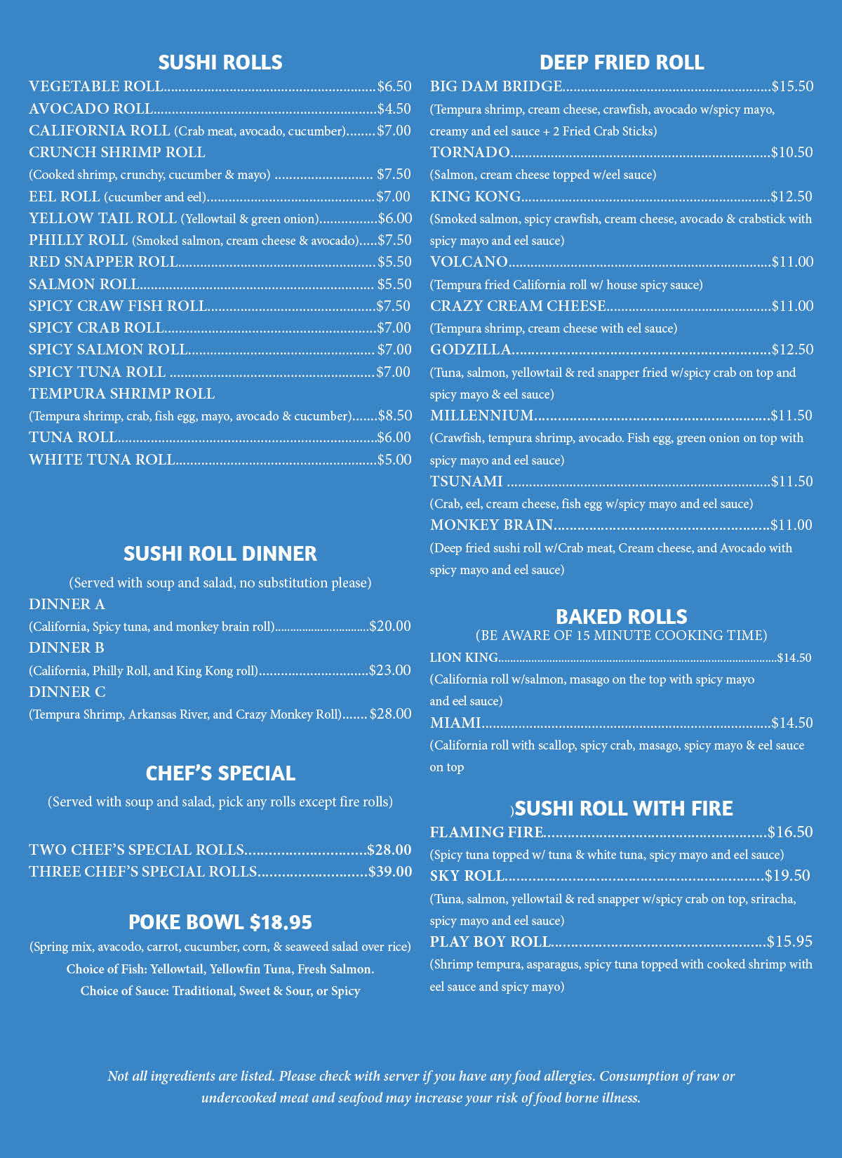 Sushi Menu